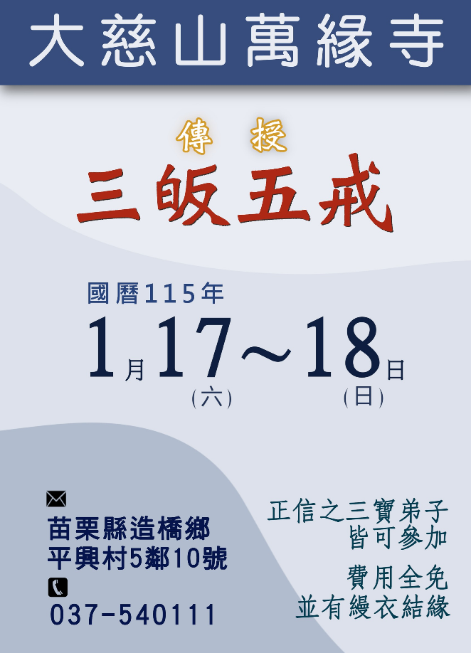 115年大慈山萬緣寺傳授三皈五戒戒會