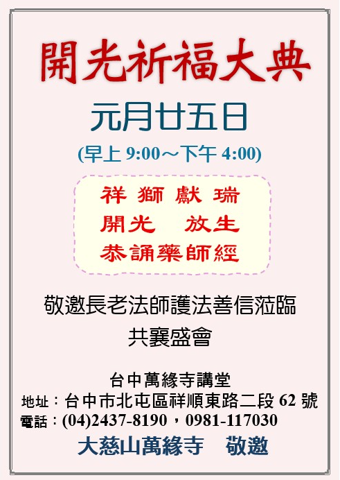 115年大慈山萬緣寺台中講堂開光典禮